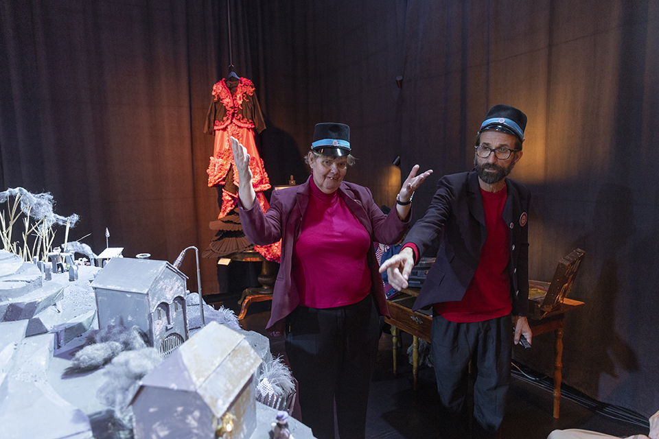 Dörrarna slås upp till en helt ny värld upp och publiken välkomnas till Helsingfors nyaste och mest dramatiska museum, DuvTeaterns Estradmuseum! Följ med på en guidad tur genom gamla och nya berättelser, föreställningar och fantasier. Upptäck miniatyrvärldar, dockor, historisk rekvisita och framtidens viskande röster. Möt också museets vaksamma vakt som håller ett öga på alltihopa.