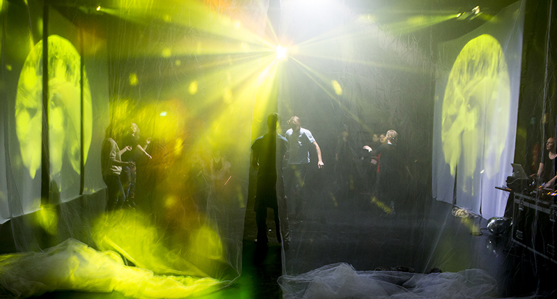 Juhlia isännöi kahden tanssijan-dj:n ja yhden mediataiteilijan työryhmä, joka törmäyttää kokeellisen tanssitaiteen ja underground-klubikulttuurin.
